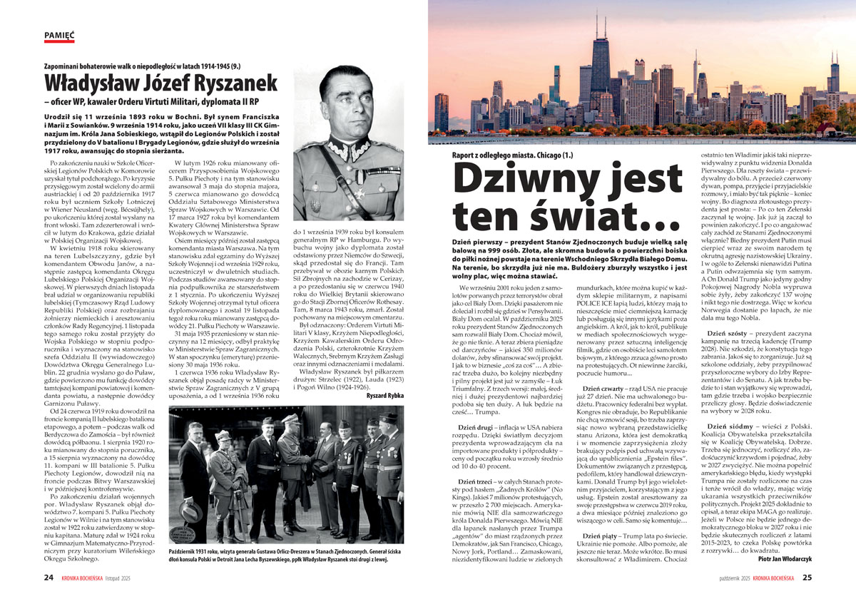 Piotr Jan Włodarczyk rozpoczyna nowy cykl zatytułowany „Raport z odległego miasta. Chicago”. We wstępie zauważa: – „We wrześniu 2001 roku jeden z samolotów porwanych przez terrorystów obrał jako cel Biały Dom. Dzięki pasażerom nie doleciał i rozbił się gdzieś w Pensylwanii. Biały dom ocalał. W październiku 2025 roku prezydent Stanów Zjednoczonych sam rozwalił Biały Dom. Chociaż mówił, że go nie tknie”.