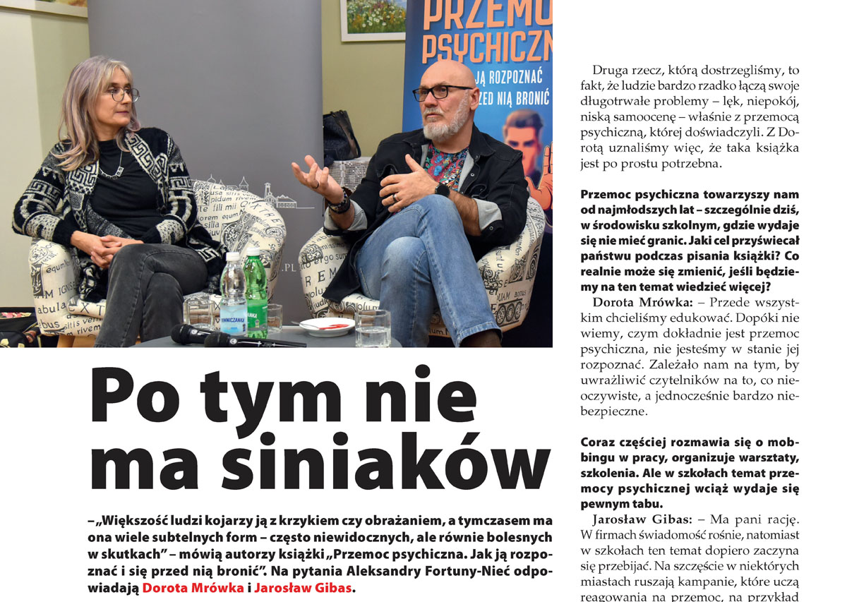 – „Większość ludzi kojarzy ją z krzykiem czy obrażaniem, a tymczasem ma ona wiele subtelnych form – często niewidocznych, ale równie bolesnych w skutkach” – mówią autorzy książki „Przemoc psychiczna. Jak ją rozpoznać i się przed nią bronić”. Z gośćmi biblioteki zaproszonymi przez Fundację „Jesteś” – Dorotą Mrówką i Jarosławem Gibasem – rozmawia Aleksandra Fortuna-Nieć.