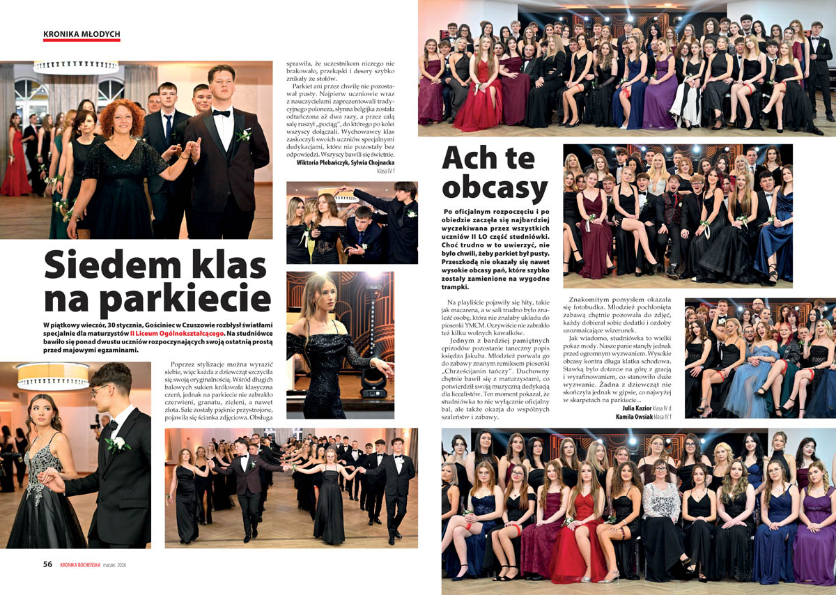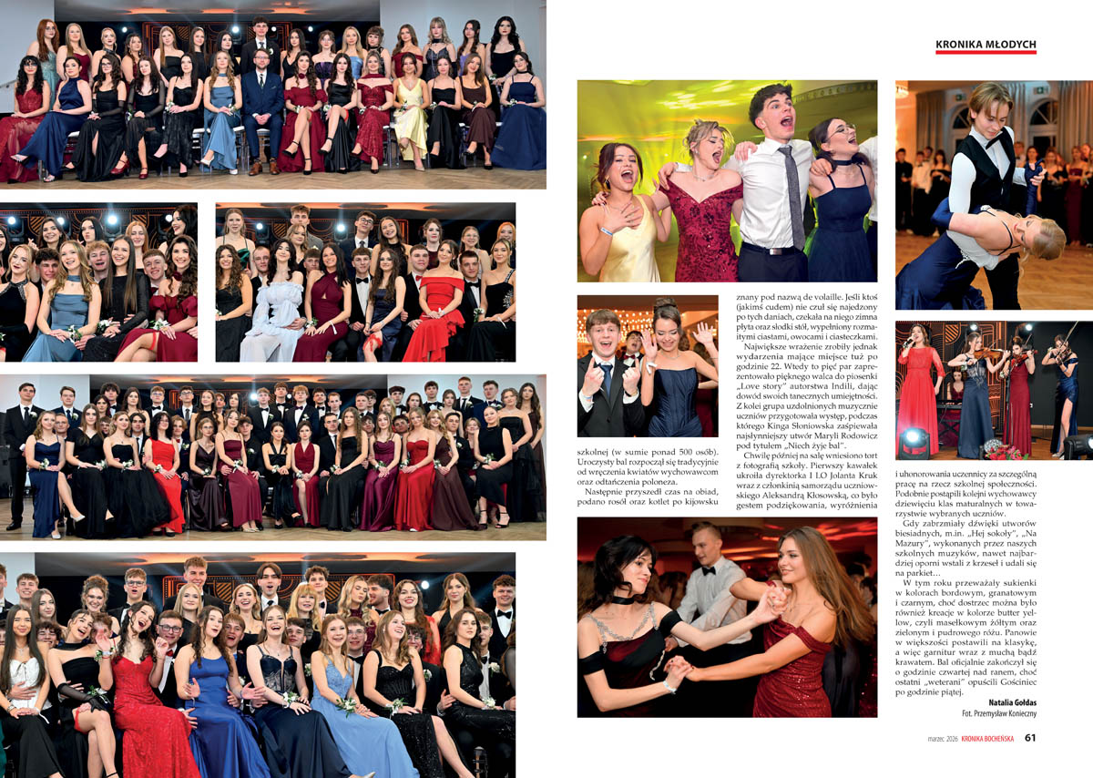 – „Poprzez stylizację można wyrazić siebie, więc każda z dziewcząt szczyciła się swoją oryginalnością” – piszą w relacji z balu studniówkowego II LO Wiktoria Plebańczyk i Sylwia Chojnacka z klasy IV f. Z kolei Julia Kazior i Kamila Owsiak zauważają: – „Znakomitym pomysłem okazała się fotobudka”. W „Kronice” odnaleźć można zdjęcia z poloneza, a także fotografie zbiorowe z osobami towarzyszącymi.