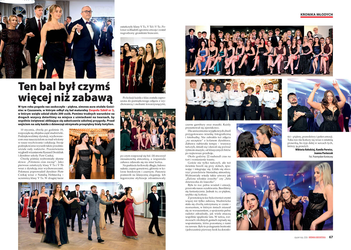Relację ze studniówki Zespołu Szkół nr 3 napisali Wiktoria Kołodziej, Kamila Porwisz i Joanna Pastuszak. – „Ten bal był czymś więcej niż zabawą” – ogłaszają już w tytule. Bal nazywają „momentem, w którym śmiech mieszał się ze wzruszeniem, a spojrzenia pełne radości zdradzały, jak wiele znaczą wspólnie spędzone lata”.