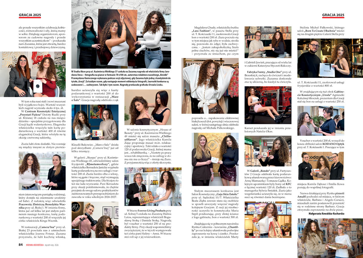 – „W konkursie brało udział wiele wspaniałych dziewczyn i każda z nas wniosła coś wyjątkowego – urodę, osobowość czy swoją historię” – mówi zdobywczyni tytułu „Gracji Bocheńskiej 2025” Zuzanna Stachura, maturzystka w II Liceum Ogólnokształcącym. „Kronika” dokumentuje odbiór licznych nagród od mecenasów konkursu.
