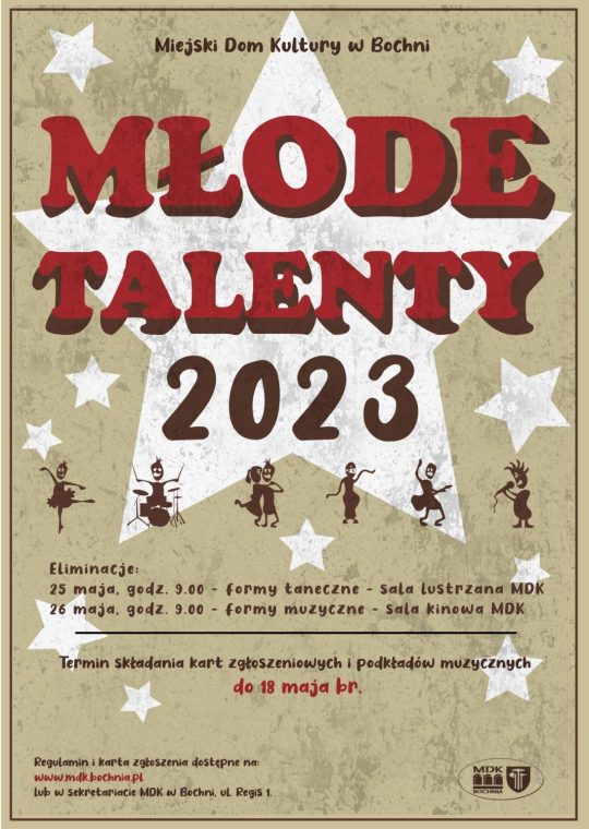 Miejski Dom Kultury w Bochni zaprasza uzdolnione dzieci i młodzież do udziału w...