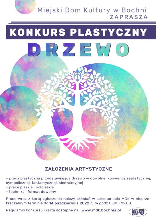 Miejski Dom Kultury zaprasza do udziału w konkursie plastycznym pt. „Drzewo”. Prace przedstawiające...